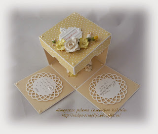 В работе использовала бумагу K&K, вырубку, много цветов, рафия, полубусины, чипборд и фигурки из полимерной глины.